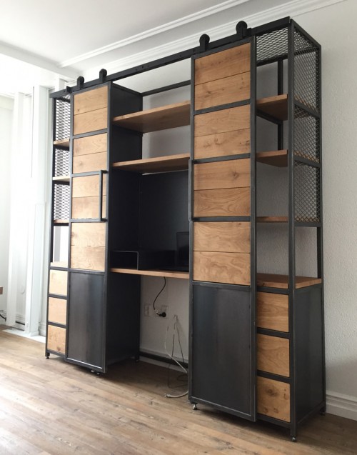 Компания Big Wood выпускает стеллажи в стиле лофт из массивов дерева. Такой вариант является достаточно популярным и используется не только в домах и офисах и развлекательных заведениях. Выполненные из натурального дерева и металла, они смотрятся очень органично в светлых и темных помещениях.